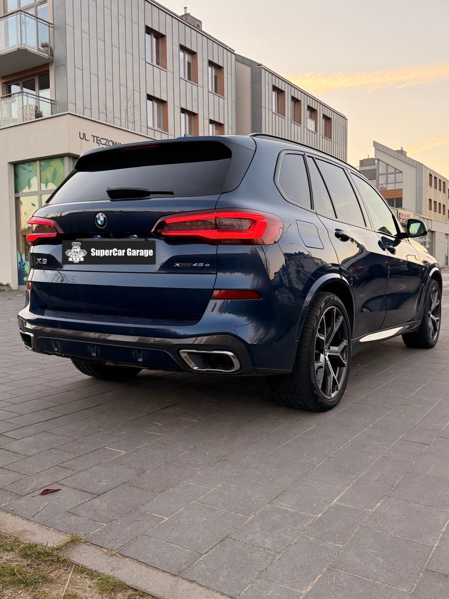BMW X5 xDrive 45e to hybrydowa wersja flagowego SUV-a łącząca sportowe osiągi, oszczędność oraz komfort na najwyższym poziomie. Układ plug-in łączy turbodoładowany silnik benzynowy z mocnym silnikiem elektrycznym, oferując dynamiczne przyspieszenia, realny zasięg w trybie elektrycznym oraz niskie zużycie paliwa. Wersja wyposażona w zawieszenie pneumatyczne zapewnia dodatkowo płynną, regulowaną charakterystykę jazdy i podwyższony komfort podróżowania.
